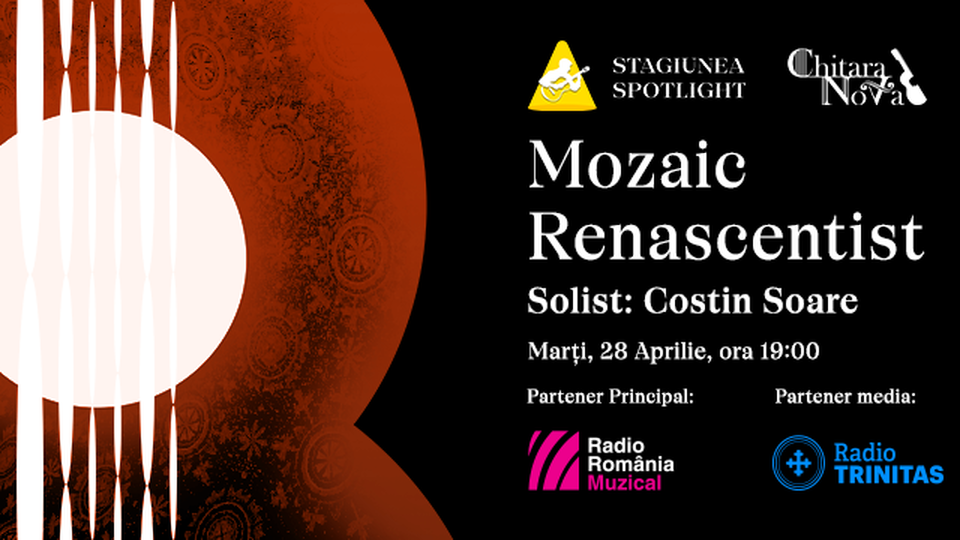 Stagiunea de chitară Spotlight propune astăzi, 28 aprilie 2026, un recital intitulat "Mozaic renascentist".