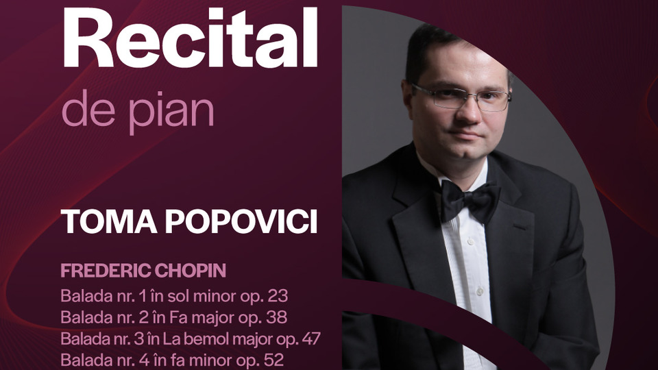 Pentru recitalul din această seară, Toma Popovici va aduce în fața publicului un program dedicat integral creației lui Frédéric Chopin. Cei prezenți vor putea audia cele patru Balade compuse de autorul polonez între anii 1831 și 1843, precum și Sonata nr. 3 op. 58 în si minor.