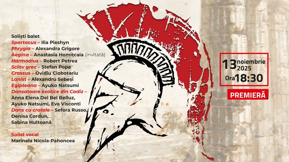 Opera Națională Română din Iași prezintă din nou astăzi, 13 noiembrie 2025, de la ora 18.30, spectacolul de balet "Spartacus" pe muzica lui Aram Haciaturian, prezentat în premieră ieri seară pe scena ieșeană.