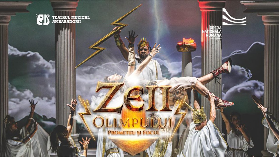 Astăzi, 14 februarie, Teatrul muzical "Ambasadorii" aduce pe scena Operei Naționale Române Cluj-Napoca spectacolul "Zeii Olimpului - Prometeu și focul", în regia lui Aurelian Horațiu Bîrcă. Din distribuție fac parte Bogdan Iacob (Prometeu), Mihnea Niculescu (Zeus), Ayona Iordănescu (Hera), Jennifer Dumitrașcu (Atena), Silviu Mihăilă (Apollo) și mulți alții. Muzica îi aparține lui Călin Ionce, iar scenografia Elenei Iorga. Ora de începere este 12:00.