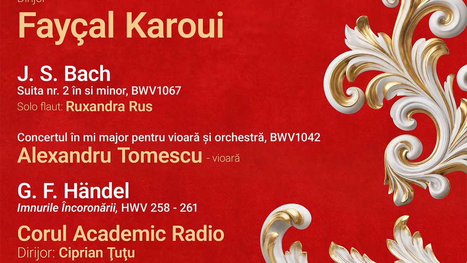Astăzi, 29 aprilie 2026, Orchestra de Cameră Radio și Corul Academic Radio pregătit de Ciprian Țuțu vor evolua sub conducerea dirijorului francez de origine tunisiană Fayçal Karoui.