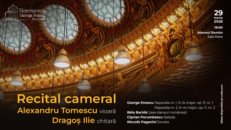 Astăzi, 29 martie 2026, violonistul Alexandru Tomescu și chitaristul Dragoș Ilie vor susține un recital cameral în Sala Mare a Ateneului Român.