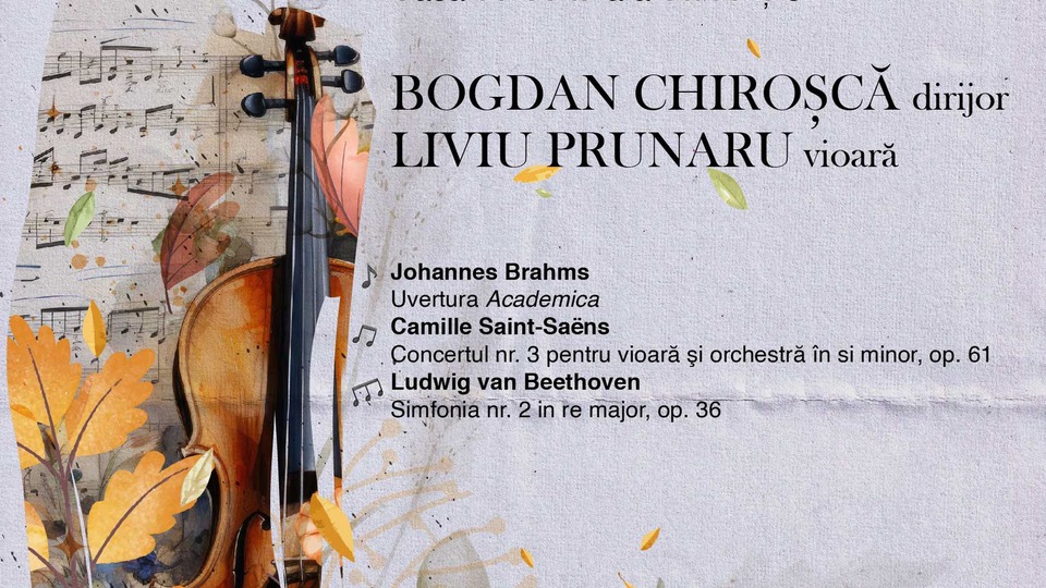Violonistul Liviu Prunaru evoluează astăzi, 24 octombrie 2025, în calitate de solist al Orchestrei Filarmonicii "Moldova" din Iași. Muzicianul va interpreta partitura solistică a Concertului nr. 3 în si minor pentru vioară și orchestră de Camille Saint-Saëns.