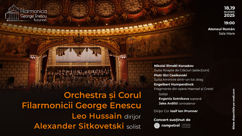 Dirijorul britanic Leo Hussain va conduce Orchestra și Corul Filarmonicii "George Enescu" în cele două concerte programate astăzi, 18 decembrie și mâine, 19 decembrie 2025, pe scena Ateneului Român.