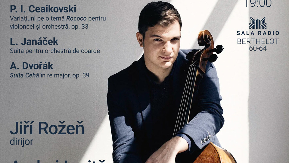 Muzicianul, laureat cu Medalia de aur la prestigiosul Concurs Internațional "Ceaikovski" de la Moscova în ediția din 2015, va interpreta "Silent Woods" pentru violoncel și orchestră de Antonin Dvoűák și, din creația lui Piotr Ilici Ceaikovski, Variațiuni op. 33 pe o temă rococo pentru violoncel și orchestră. Din program mai fac parte poemul simfonic "Orawa" de Wojciech Kilar, Suita pentru orchestră de coarde de Leoč Janáèek și Suita cehă op. 39 în re major de Antonin Dvoűák.