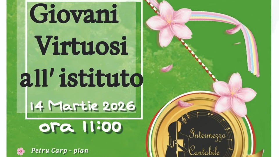 "Giovani Virtuosi all'Istituto" este titlul evenimentului programat astăzi, 14 martie 2026, la ora 11:00, la Institutul Italian de Cultură din București.