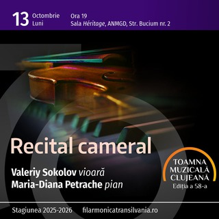 Violonistul Valeriy Sokolov și pianista Maria-Diana Petrache - recital în programul Festivalului „Toamna Muzicală Clujeană”Publicat: luni, 13 Octombrie 2025 |