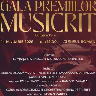 Gala Premiilor Musicrit ediția a IV-a, pe 14 ianuarie, la Ateneul RomânPublicat: sâmbătă, 10 Ianuarie 2026 |