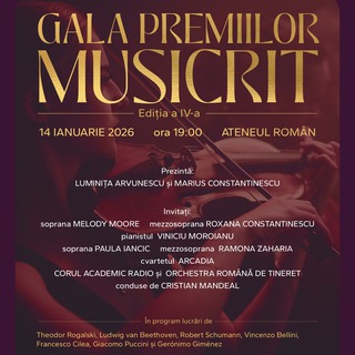 Gala premiilor Musicrit, miercuri, 14 ianuarie 2026, la Ateneul RomânPublicat: luni, 12 Ianuarie 2026 |