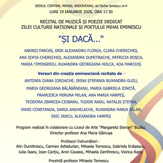 „Și dacă...” recital dedicat Zilei Culturii Nationale la Biblioteca Metropolitană BucureștiPublicat: luni, 19 Ianuarie 2026 |