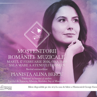 Pianista Alina Bercu, pe 17 februarie în recital, sub egida proiectului „Moștenitorii României muzicale”Publicat: marți, 20 Ianuarie 2026 |