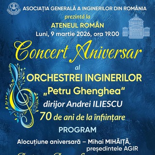 Concert aniversar al Orchestrei Inginerilor „Petru Ghenghea”, pe 9 martie la Ateneul RomânPublicat: duminică, 8 Martie 2026 |