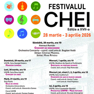 Concertul de deschidere al Festivalului „Chei” la Filarmonica George EnescuPublicat: sâmbătă, 28 Martie 2026 |