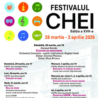 Patru propuneri cu intrarea liberă în cadrul Festivalului „Chei” al UNMBPublicat: miercuri, 1 Aprilie 2026 |